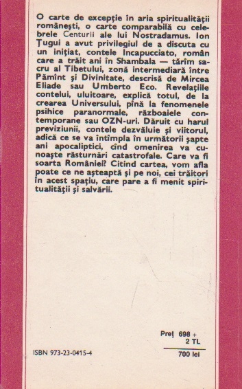 Comandă online Sapte ani apocaliptici (Dezvaluirile Contelui Incapucciato) la 20,10 lei scrisă de Ion Tugui, tiparită la editura Cartea Romaneasca face parte din colecția Gnosis în anul 1992. cu plata ramburs sau online cu cardul. Momentan titlul Sapte ani apocaliptici (Dezvaluirile Contelui Incapucciato) nu este disponibil însa vă puteți înscrie pentru a fi notificat în momenul reaprovizionarii.