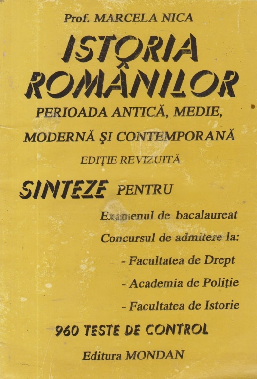 Comandă online cartea "Istoria romanilor - Perioada antica, medie, moderna si contemporana - Sinteze pentru examenul de bacalauareat" la 15,90 lei scrisă de Marcela Nica, tiparită la editura Mondan în anul 1994 cu un număr de 303 pagini. cu plata ramburs sau online cu cardul. Momentan titlul "Istoria romanilor - Perioada antica, medie, moderna si contemporana - Sinteze pentru examenul de bacalauareat" nu este disponibil însa vă puteți înscrie pentru a fi notificat în momenul reaprovizionarii.