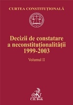 Lucrarea de faţă reprezintă o culegere a deciziilor Curţii Constituţionale pe anii 1999-2003, al cărei scop ambiţios este de a oferi teoreticienilor şi practicienilor dreptului, precum şi altor persoane interesate posibilitatea cunoaşterii cât mai complete a activităţii Curţii Constituţionale, marcând astfel impactul modificator asupra ordinii juridice normative. Volumul contine 4 Index-uri complexe, care să asigure accesul rapid şi sigur la deciziile Curţii şi a informaţiilor căutate. Publicul-ţintă: judecători, procurori, avocaţi s.a.