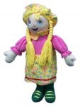 Papusa din material textil foarte frumos colorata, cu codite si hainute haioase. Nerecomandata copiilor sub 3 ani.