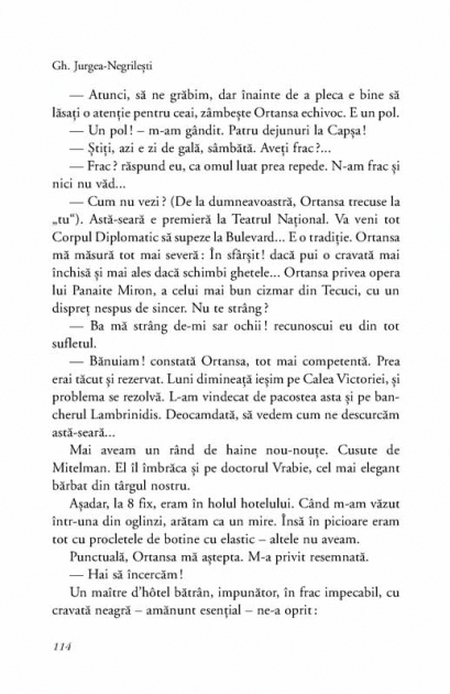 „Cartea lui Gh. Jurgea-Negrilesti capata deseori caracterul unei cronici istorice subiective, desigur, insa plina de interes. Dar, mai ales, plina de mult farmec, de un stil spontan, atragator. E ceva – pastrind, desigur, toate proportiile – in genul parsivului marchiz de Custine, minus apucaturile… Pline de originalitate si de o anume percutanta psihologica sint si replicile istorice semanate de-a lungul acestui text fluent, facind, cu siguranta, deliciul cititorului.” (Constantin Toiu)