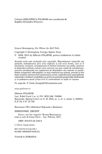 Colecția: BIBLIOTECA POLIROM -> Seria de autor "Ernest Hemingway"