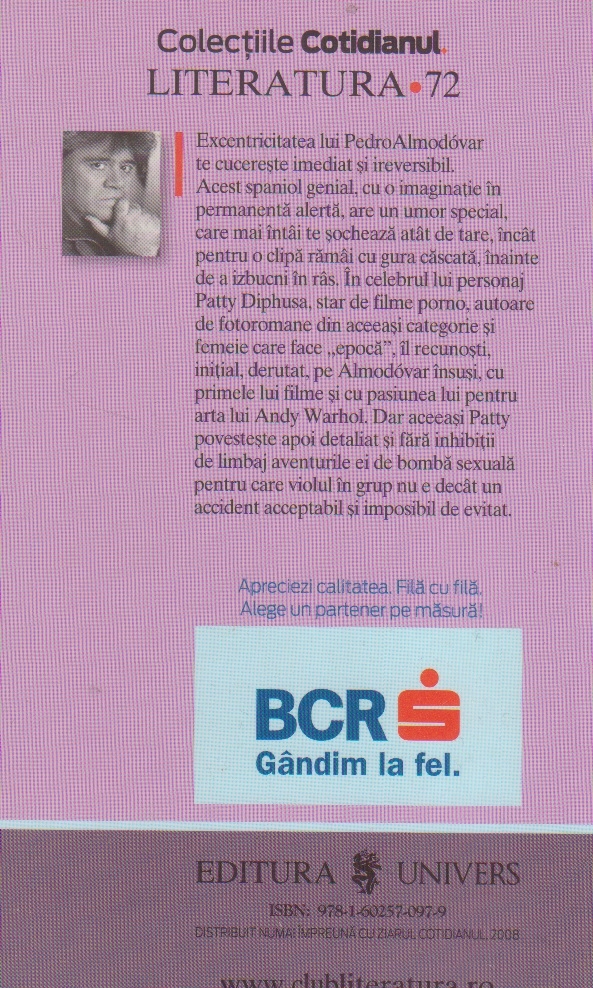 Comandă online Patty Diphusa la 6,20 lei isbn 9781602570979 scrisă de Pedro Almodovar, tiparită la editura Univers face parte din colecția Literatura. cu plata ramburs sau online cu cardul. Momentan titlul Patty Diphusa nu este disponibil însa vă puteți înscrie pentru a fi notificat în momenul reaprovizionarii.