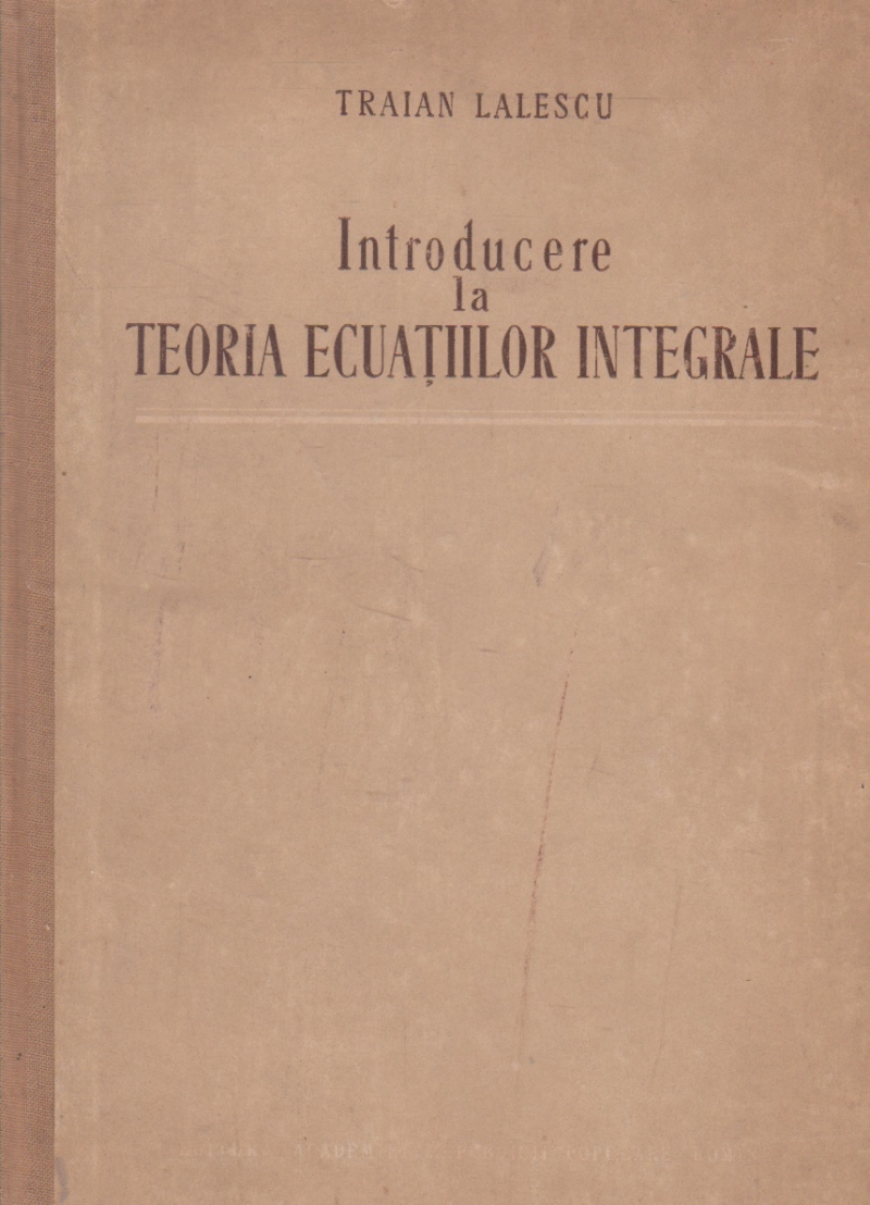 Aceasta carte, aparuta la Bucuresti in 1911, este prima carte din lume despre ecuatii integrale. Este citata in multe lucrari de specialitate, ceea ce dovedeste ca este citita si acum cu destul interes. Editia de fata este o reeditare a editiei din 1911.