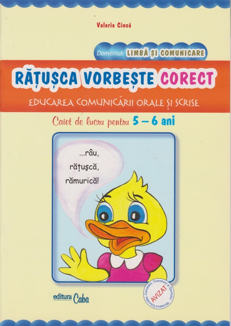 Comandă online RATUSCA VORBESTE CORECT - educarea comunicarii orale si scrise - caiet de lucru pentru 5-6 ani la 12,21 lei isbn 9789737672278 scrisă de Valeria Cinca, tiparită la editura Caba face parte din colecția Prichindel. Cartea poate fi livrată în circa 2 zile cu plata ramburs sau online cu cardul.