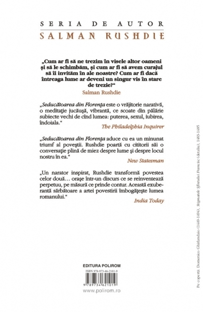 Polirom initiaza seria de autor „Salman Rushdie”, in editie paperback, ce debuteaza cu Seducatoarea din Florenta – cel mai recent roman al cunoscutului scriitor – si caruia ii vor urma Shalimar Clovnul si Pamintul de sub talpile ei.