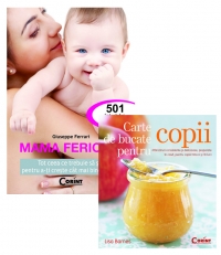 MAMA FERICITA Tot ceea ce trebuie sa stii pentru a-ti creste cat mai bine copilul. Travaliul natural faciliteaza adaptarea fatului la viata extrauterina? Ce trebuie facut in cazul unui angiom? Cand trebuie sa ne alarmam in caz de intarziere a vorbirii? Avand mai mult de patruzeci de ani de experienta ca medic pediatru, Giuseppe Ferrari raspunde la toate intrebarile care i-au fost puse de catre mame de-a lungul carierei. CARTE DE BUCATE PENTRU COPII Un inceput sanatos si fericit. Bebelusii si copiii care incep sa mearga de-a busilea sunt energici, curajosi si au o personalitate puternica. De ce sa-i hranim cu mancare fada si neapetisanta? Cu ingrediente si condimente proaspete, cu explicatii despre momentul potrivit pentru a introduce alimente noi si cu retete concentrate pe aportul nutritiv, Cartea de bucate pentru copii reprezinta o abordare curajoasa pentru alimentatia sanatoasa a copiilor intre 6 si 18 luni.