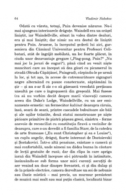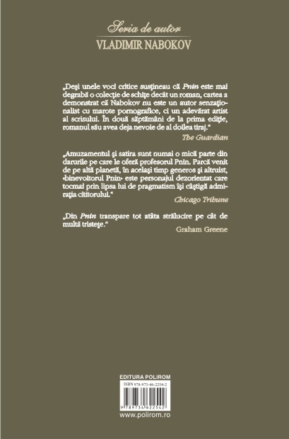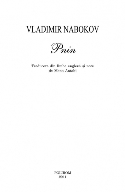 Pnin, una dintre piesele clasice ale operei lui Vladimir Nabokov, intr-o noua editie in seria de autor din cadrul colectiei „Biblioteca Polirom”.
