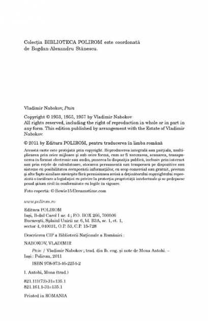 Colecția: BIBLIOTECA POLIROM -> Seria de autor "Vladimir Nabokov"