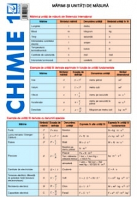Format A4, 6 pagini color. Pliantul contine: marimi si unitati de masura, formule de calcul folosite in chimie, legile chimiei, formule si denumiri ale unor substante chimice, tabelul periodic al elementelor.