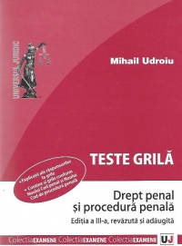 Cartea Teste grila. Drept penal si procedura penala acopera intreaga tematica solicitata la examenele de licenta, admitere la Institutul National al Magistraturii, in magistratura sau avocatura, promovare in functii de executie a magistratilor, la examenul de capacitate al magistratilor stagiari, respectiv definitivat al avocatilor stagiari.