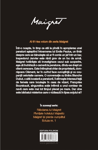 Intr-o noapte, in timp ce sta la pinda in apropierea unei pensiuni asteptind intoarcerea lui Emile Paulus, un tinar despre care se banuieste ca ar fi comis un jaf intr-un bar, inspectorul Janvier este ranit grav de un foc de arma. Maigret hotaraste sa investigheze cazul sub acoperire, asa ca inchiriaza o camera la pensiune, dindu-se drept un client oarecare. Este intimpinat chiar de proprietara, domnisoara Clément, iar in curind face cunostinta si cu ocupantii celorlalte camere. O conversatie cu tinara Blanche Dubut, o alta locatara a pensiunii, ii stirneste interesul fata de femeia care locuieste in casa de vizavi, Françoise Boursicault, singuratica sotie infirma a unui comisar de nava care este mai tot timpul plecat pe mare. Dar cine este barbatul misterios care o viziteaza in lipsa sotului ei?