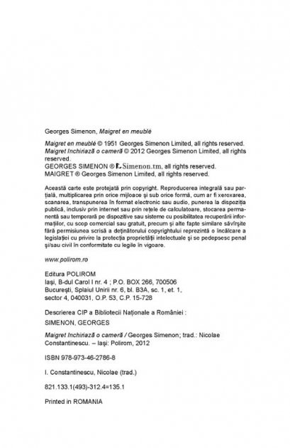 Comandă online Maigret închiriază o cameră isbn 9789734627868 scrisă de Georges Simenon, tiparită la editura Polirom face parte din colecția Seria Maigret. cu plata ramburs sau online cu cardul. Momentan titlul Maigret închiriază o cameră nu este disponibil însa vă puteți înscrie pentru a fi notificat în momenul reaprovizionarii.