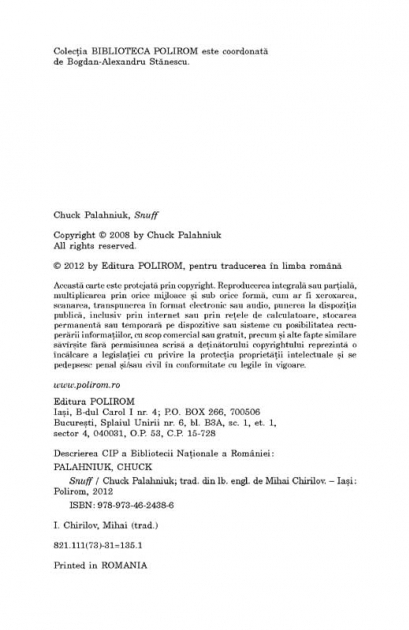 Proza XXI. cu plata ramburs sau online cu cardul. Momentan titlul "Snuff" nu este disponibil însa vă puteți înscrie pentru a fi notificat în momenul reaprovizionarii.">