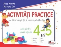 Insotiti de Rita-Gargarita si de Greierasul Albastru, cei mici vor invata sa aplice tehnici de lucru specifice activitatilor practice, folosind diverse materiale. Lucrand in paginile acestui caiet, cei mici vor realiza: „Servetelul“, „Ursul“, „Iepurasul“, „Cocosul“, „Acvariul cu pesti“ si multe altele. In plus, in cadrul fiecarei teme veti gasi cate o poezie si sarcini suplimentare (colorare, trasare etc.).