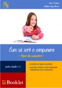 Cum sa scrii o compunere - tipuri de compuneri pentru clasele V-VI este un auxiliar didactic care se adreseaza elevilor de gimnaziu si are ca scop consolidarea deprinderilor de exprimare in scris, in realizarea diferitelor tipuri de compuneri cerute de programa scolara. Lucrarea de fata este organizata sub forma unui caiet individual, care pune la dispozitia elevilor indicatii teoretice, modele de compuneri si, desigur, un numar insemnat de aplicatii. Exercitiile sunt variate, cu grade diferite de dificultate, progresive si pun accent pe efortul elevilor de a redacta corect un anumit tip de compunere. Elevii vor gasi in acest caiet tipuri de exercitii pentru formarea abilitatilor de analiza a unui text la prima vedere, exercitii de creativitate, care le ofera posibilitatea de a construi, progresiv, un anumit tip de compunere, cat si exercitii care cer exprimarea opiniei despre un text literar sau despre evenimente din viata lor.