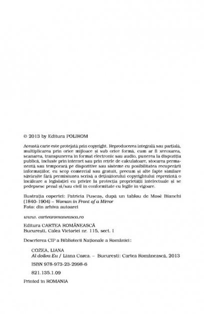 Comandă online Al doilea eu la 11,66 lei isbn 9789732329986 scrisă de Liana Cozea, tiparită la editura Cartea Romaneasca 2005-2016 face parte din colecția Cartea romaneasca. cu plata ramburs sau online cu cardul. Momentan titlul Al doilea eu nu este disponibil însa vă puteți înscrie pentru a fi notificat în momenul reaprovizionarii.