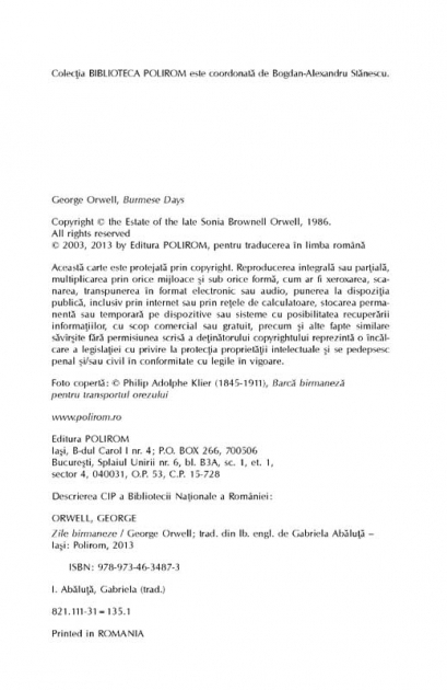 Comandă online Zile birmaneze isbn 9789734634873 scrisă de George Orwell, tiparită la editura Polirom face parte din colecția BIBLIOTECA POLIROM -> Esential. cu plata ramburs sau online cu cardul. Momentan titlul Zile birmaneze nu este disponibil însa vă puteți înscrie pentru a fi notificat în momenul reaprovizionarii.