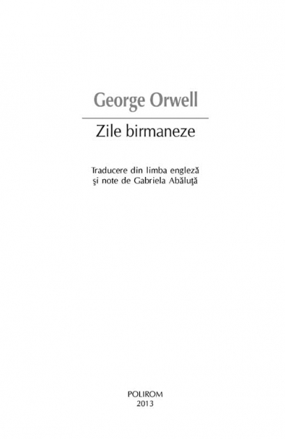 Clubul European este locul in care colonialistii britanici vin sa-si treaca plictisul, dar si mirajul micilor afaceristi birmanezi cu ambitii mari. James Flory, negustorul britanic de cherestea care-si petrece zilele la Club alaturi de conationalii sai, este protagonistul romanului Zile birmaneze si modelul in jurul caruia graviteaza universul coloniei schitat de George Orwell. Ajuns la virsta marilor indoieli, James urmareste apatic jocul machiavelic al lui U Po Kyin si dovezile induiosatoare de prietenie ale amicului sau, doctorul Veraswami, si spera sa-si gaseasca raspunsurile la intrebari alaturi de frumoasa si ezitanta Elizabeth.