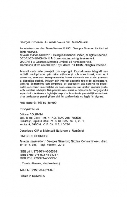 Comandă online Taverna marinarilor isbn 9789734636389 scrisă de Georges Simenon, tiparită la editura Polirom face parte din colecția Seria Maigret. cu plata ramburs sau online cu cardul. Momentan titlul Taverna marinarilor nu este disponibil însa vă puteți înscrie pentru a fi notificat în momenul reaprovizionarii.