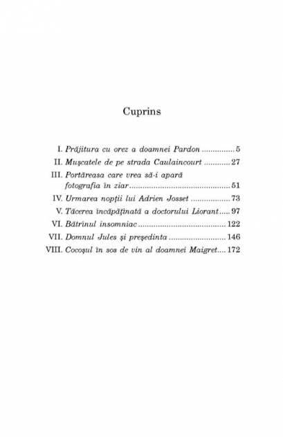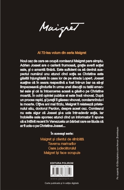 Traducere de Nicolae Constantinescu Noul caz de care se ocupa comisarul Maigret pare simplu. Adrien Josset are o cariera frumoasa, gratie averii sotiei sale, si o amanta tinara. Este suficient ca sa devina suspectul numarul unu atunci cind sotia sa Christine este gasita injunghiata in casa lor de pe strada Lopert. Josset sustine ca in seara respectiva a fost intr-un bar ca sa-si limpezeasca gindurile in urma unei discutii cu tatal amantei sale si ca la intoarcerea acasa a gasit-o pe Christine moarta. In ochii opiniei publice el este insa vinovat. Dupa un proces rapid, si juratii il gasesc vinovat, condamnindu-l la moarte. Citiva ani mai tirziu, Maigret ii relateaza prietenului sau, doctorul Pardon, despre acest caz. Comisarul nu este sigur ca Josset si-a ucis intr-adevar sotia. Iar indoielile sale sporesc atunci cind un informator ii spune ca a intilnit recent in Venezuela un barbat care se lauda ca ar fi ucis-o pe Christine Josset...