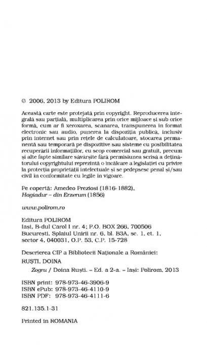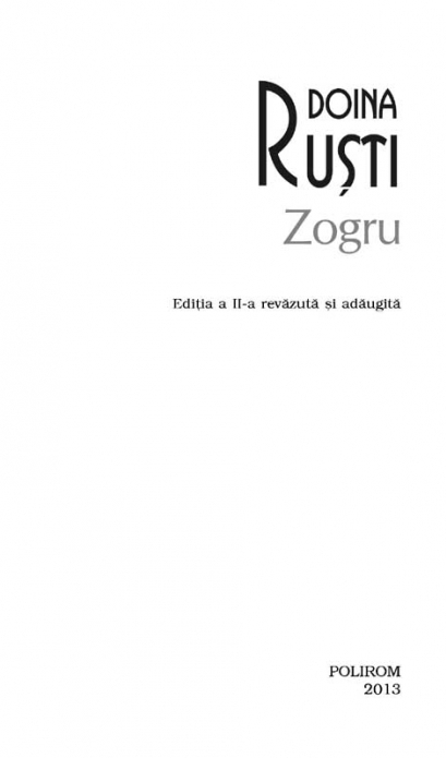 Comandă online cartea "Zogru (ediția a II-a revăzută și adăugită, de buzunar)" la 10,60 lei isbn 9789734639069 scrisă de Doina Rusti, tiparită la editura Polirom face parte din colecția Top 10+. cu plata ramburs sau online cu cardul. Momentan titlul "Zogru (ediția a II-a revăzută și adăugită, de buzunar)" nu este disponibil însa vă puteți înscrie pentru a fi notificat în momenul reaprovizionarii.