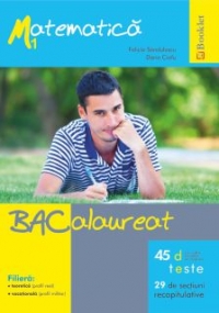 Matematica - Bacalaureat este un ghid ce vine in intampinarea elevilor care se pregatesc pentru sustinerea examenului de bacalaureat in anul 2014, la proba Matematica M1. Ghidul de pregatire este structurat in 29 de secvente, corespunzatoare temelor recapitulative din programa de matematica M1 pentru bacalaureat, oferind elevilor cateva notiuni de teorie, dar si o serie de exercitii si probleme specifice fiecarei teme abordate. Ghidul contine, de asemenea, si 45 de teste recapitulative, realizate in conformitate cu programa MEN. Temele sunt impartite pe ani de studiu, iar la sfarsitul fiecarui an exista cate doua teste recapitulative: clasa a IX-a (Multimi si elemente de logica matematica, Siruri, Siruri particulare - progresii, Functii, Lecturi grafice, Functia de gradul I, Functia de gradul al II-lea, Interpretarea geometrica a proprietatilor algebrice ale functiei de gradul al II-lea, Vectori in plan, Coliniaritate, concurenta, paralelism, Elemente de trigonometrie, Aplicatii ale trigonometriei si ale produsului scalar a doi vectori in geometria plana), clasa a X-a (Multimi de numere. Permutari. Aranjamente. Combinari, Matematici financiare, Geometrie analitica), clasa a XI-a (Permutari, Matrice, Determinanti, Sisteme de ecuatii liniare, Siruri de numere reale. Limite de Functii, Continuitate, Derivabilitate, Reprezentarea grafica a functiilor), clasa a XII-a (Grupuri, Inele si corpuri, Inele de polinoame cu coeficienti intr-un corp comutativ, Primitive, Integrala definita, Aplicatii ale integralei definite).
