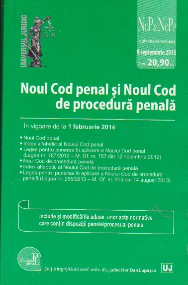 Ingrijita de conf. univ. dr., judecator Dan Lupascu, lucrarea Noul Cod penal si Noul Cod de procedura penala (Legislatie consolidata: in vigoare de la 1 februarie 2014) contine: