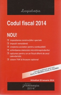 Editura Hamangiu va ofera Codul fiscal cu toate modificarile la zi, cele mai recente fiind cele aduse prin O.U.G. nr. 111/2013 pentru reglementarea unor masuri fiscale si pentru modificarea unor acte normative (M. Of. nr. 809 din 19 decembrie 2013). Aceasta ordonanta reglementeaza sistemul TVA la incasare optional. Pentru a fi mai usor de urmarit, in cadrul lucrarii, modificarile aplicabile de la 1 ianuarie 2014 au fost evidentiate printr-o linie verticala, iar versiunea anterioara a fost redata la nota de subsol, cu caractere italice.