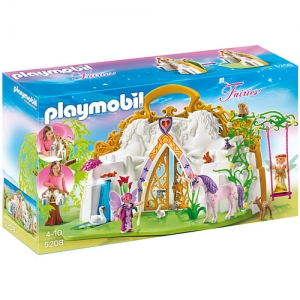 Porneste intr-o aventura fantastica cu Tinutul Mobil al Zanelor. Aceasta caseta portabila cu maner poleit contine o frumoasa cascada si o lanterna functionala in forma de floare care straluceste. Impodobite cu bijuterii lucitoare, zanele adora sa se dea in leagan. Pentru a va juca cu acest set, deschideti panoul verde din spate si trageti-l in fata pentru a crea o gradina atragatoare. Cand joaca s-a terminat, panoul verde se detaseaza si incape in spatele setului pentru a crea un spatiu de stocare pentru toate piesele, facand acest set perfect ca un accesoriu de calatorie. Setul include doua zane inaripate, un unicorn, leagan, copac, flori, bufnita, lebada, ied, iepuri, pasari si alte accesorii.
