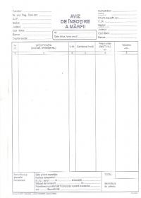 Comandă online cartea "Aviz de Insotire a Marfii A4, 3 ex, hartie autocopiativa" la 12,70 lei face parte din colecția Tipizate categorie Învățamânt - Educație. cu plata ramburs sau online cu cardul. Momentan titlul "Aviz de Insotire a Marfii A4, 3 ex, hartie autocopiativa" nu este disponibil însa vă puteți înscrie pentru a fi notificat în momenul reaprovizionarii.