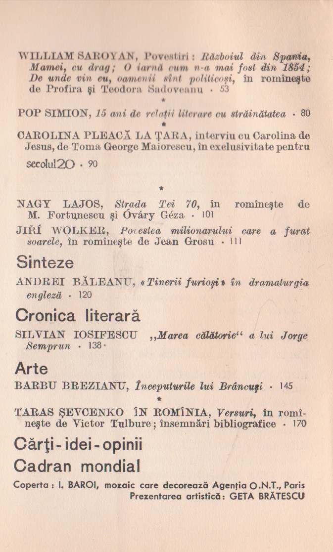 Secolul 20: Contributii si atitudini romanesti, Nr.10/1966)