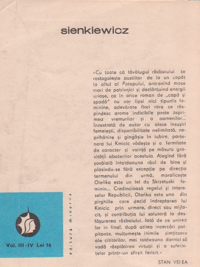 Comandă online Potopul, Volumul al III- lea la 6,20 lei scrisă de Henryk Sienkiewicz Stan Velea, tiparită la editura Minerva face parte din colecția Biblioteca pentru toti. cu plata ramburs sau online cu cardul. Momentan titlul Potopul, Volumul al III- lea nu este disponibil însa vă puteți înscrie pentru a fi notificat în momenul reaprovizionarii.