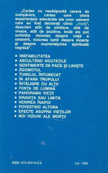 Comandă online Viata dupa viata- Investigarea unui fenomen: supravietuirea dincolo de moartea trupeasca la 15,90 lei scrisă de Raymond A. Moody, Jr., tiparită la editura Larry Cart cu un număr de 191 pagini de anticariat (foarte buna). Livrare din stoc cu plata ramburs sau online cu cardul.