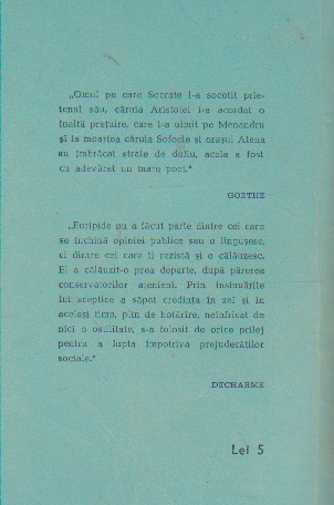 Comandă online Alcesta. Medeca. Bachantele. Ciclopul la 15,90 lei scrisă de Euripide, tiparită la editura Pentru Literatura face parte din colecția Biblioteca pentru toti în anul 1965. cu plata ramburs sau online cu cardul. Momentan titlul Alcesta. Medeca. Bachantele. Ciclopul nu este disponibil însa vă puteți înscrie pentru a fi notificat în momenul reaprovizionarii.