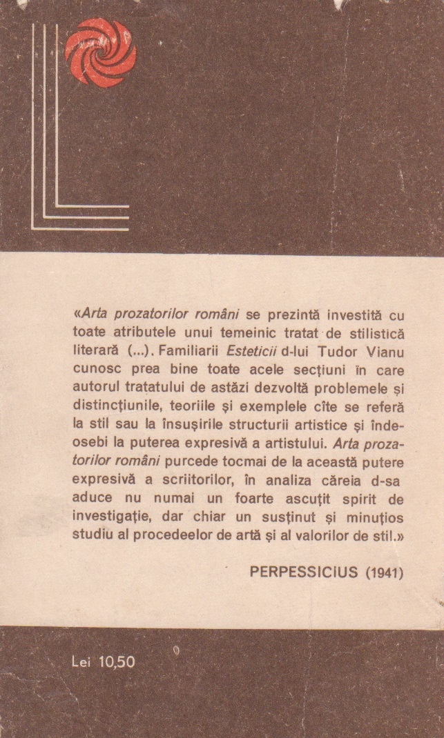 Comandă online Arta prozatorilor romani la 15,90 lei scrisă de Tudor Vianu, tiparită la editura Albatros face parte din colecția Sinteze Lyceum în anul 1977. cu plata ramburs sau online cu cardul. Momentan titlul Arta prozatorilor romani nu este disponibil însa vă puteți înscrie pentru a fi notificat în momenul reaprovizionarii.