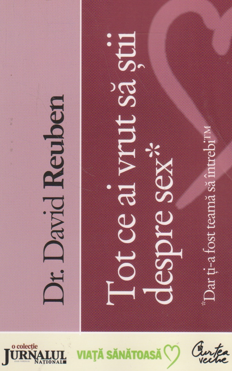 Comandă online Tot ce ai vrut sa stii despre sex la 15,90 lei scrisă de David Reuben, tiparită la editura Curtea Veche face parte din colecția Jurnalul National în anul 2008. Livrare din stoc cu plata ramburs sau online cu cardul.