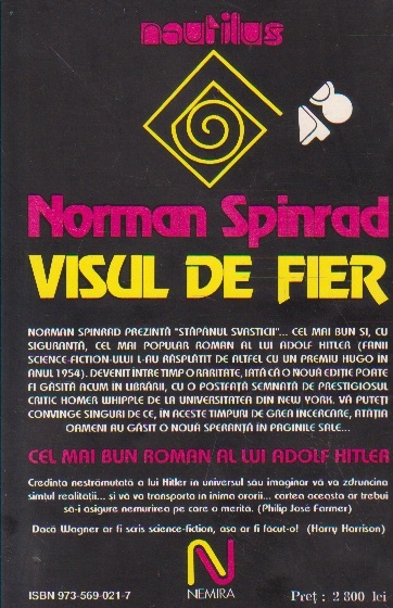 Comandă online cartea "Visul de fier" la 15,90 lei scrisă de Norman Spinrad, tiparită la editura Nemira face parte din colecția Nautilus SF în anul 1994. cu plata ramburs sau online cu cardul. Momentan titlul "Visul de fier" nu este disponibil însa vă puteți înscrie pentru a fi notificat în momenul reaprovizionarii.