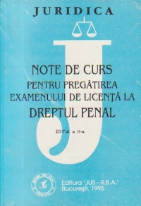 Comandă online Note de curs pentru pregatirea examenului de licenta la Dreptul Penal (Pentru uzul studentilor) la 10,50 lei scrisă de Toma Hentea, tiparită la editura JUS - R.B.A. în anul 1995 cu un număr de 215 pagini. cu plata ramburs sau online cu cardul. Momentan titlul Note de curs pentru pregatirea examenului de licenta la Dreptul Penal (Pentru uzul studentilor) nu este disponibil însa vă puteți înscrie pentru a fi notificat în momenul reaprovizionarii.