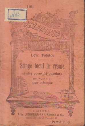 Comandă online Stinge focul la vreme si alte povestiri populare la 20,10 lei scrisă de Lev Nikolaevici Tolstoi Iosif Nadejde, tiparită la editura Librariei Leon Alcalay face parte din colecția Biblioteca Pentru Toti. cu plata ramburs sau online cu cardul. Momentan titlul Stinge focul la vreme si alte povestiri populare nu este disponibil însa vă puteți înscrie pentru a fi notificat în momenul reaprovizionarii.
