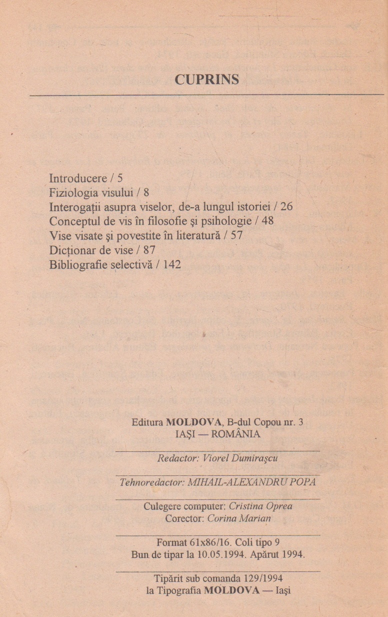Comandă online cartea "Dictionar de vise (cheia de aur si de argint a viselor)" la 13,60 lei Noemi Bomher, tiparită la editura Moldova în anul 1994 cu un număr de 143 pagini. cu plata ramburs sau online cu cardul. Momentan titlul "Dictionar de vise (cheia de aur si de argint a viselor)" nu este disponibil însa vă puteți înscrie pentru a fi notificat în momenul reaprovizionarii.