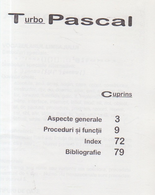Comandă online Turbo Pascal - Caiet de Laborator la 6,20 lei cu un număr de 79 pagini categorie Programare, Calculatoare / IT. cu plata ramburs sau online cu cardul. Momentan titlul Turbo Pascal - Caiet de Laborator nu este disponibil însa vă puteți înscrie pentru a fi notificat în momenul reaprovizionarii.