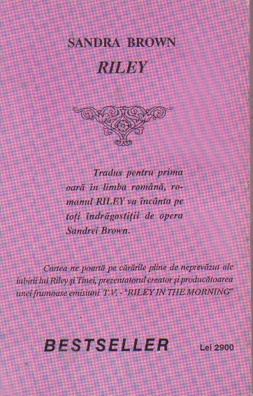 Comandă online cartea "Riley" la 13,60 lei scrisă de Sandra Brown, tiparită la editura Granada în anul 1995 cu un număr de 213 pagini. cu plata ramburs sau online cu cardul. Momentan titlul "Riley" nu este disponibil însa vă puteți înscrie pentru a fi notificat în momenul reaprovizionarii.