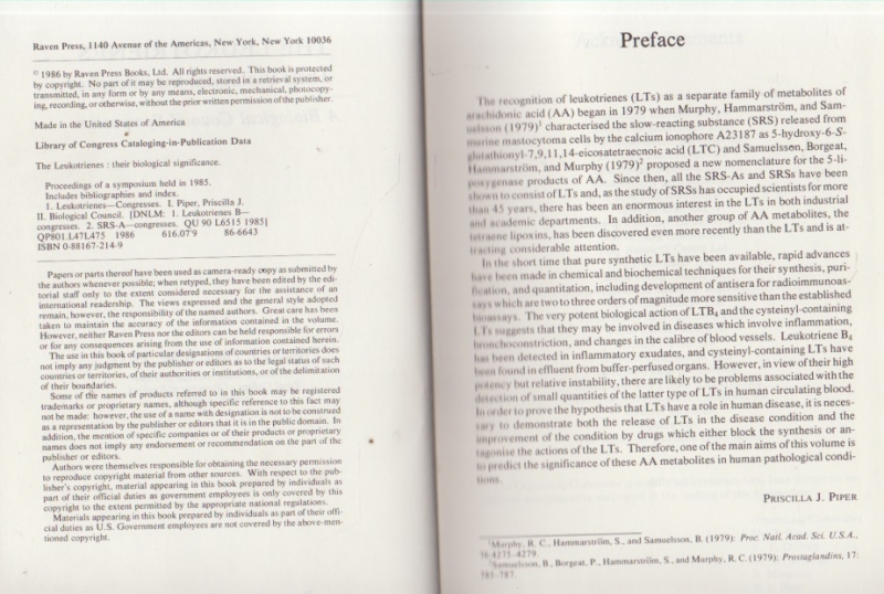 Comandă online The Leukotrienes - Their Biological Significance la 10,50 lei scrisă de Priscilla J. Piper, tiparită la editura Raven Press New York în anul 1982 cu un număr de 219 pagini. Livrare din stoc cu plata ramburs sau online cu cardul.