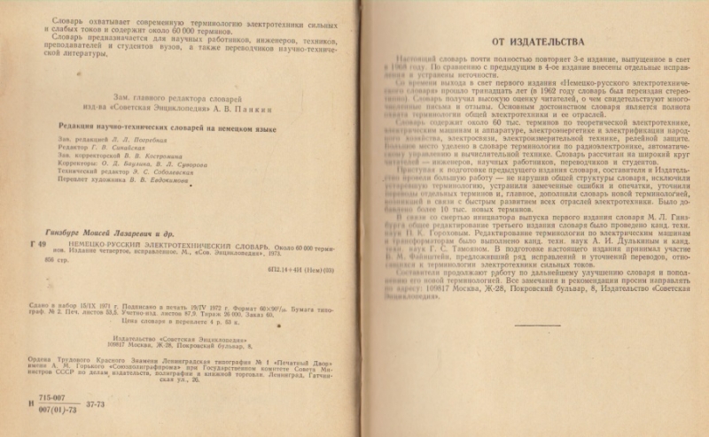 Comandă online Nemetzko-Ruskii Elektrotehniceskii Slovari / Deutsch-Russisches Elektrotechnisches Worterbuch (Dictionar electrotehnic german-rus) la 30,70 lei scrisă de M. L. Ginsburg, tiparită la editura Moskva în anul 1973 cu un număr de 856 pagini. cu plata ramburs sau online cu cardul. Momentan titlul Nemetzko-Ruskii Elektrotehniceskii Slovari / Deutsch-Russisches Elektrotechnisches Worterbuch (Dictionar electrotehnic german-rus) nu este disponibil însa vă puteți înscrie pentru a fi notificat în momenul reaprovizionarii.