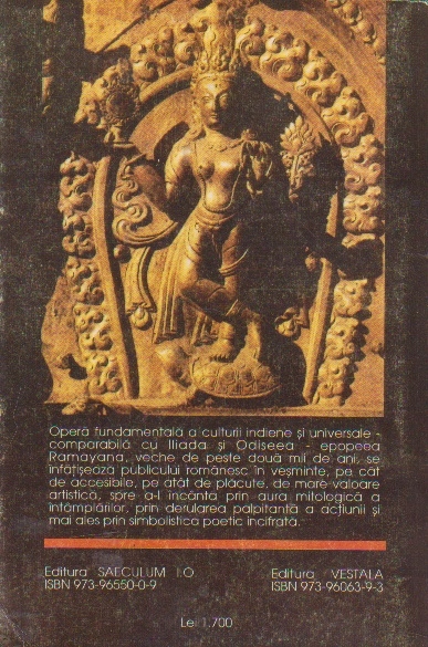 Comandă online cartea "Ramayana" la 13,60 lei isbn 9739655009, tiparită la editura Saeculum în anul 1994 cu un număr de 238 pagini. cu plata ramburs sau online cu cardul. Momentan titlul "Ramayana" nu este disponibil însa vă puteți înscrie pentru a fi notificat în momenul reaprovizionarii.