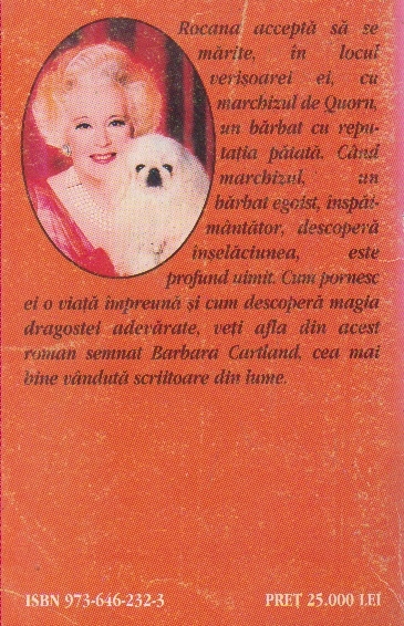 Comandă online cartea "Adevarata mireasa" la 6,20 lei scrisă de Barbara Cartland, tiparită la editura Alcris face parte din colecția Nostalgic în anul 2003. cu plata ramburs sau online cu cardul. Momentan titlul "Adevarata mireasa" nu este disponibil însa vă puteți înscrie pentru a fi notificat în momenul reaprovizionarii.
