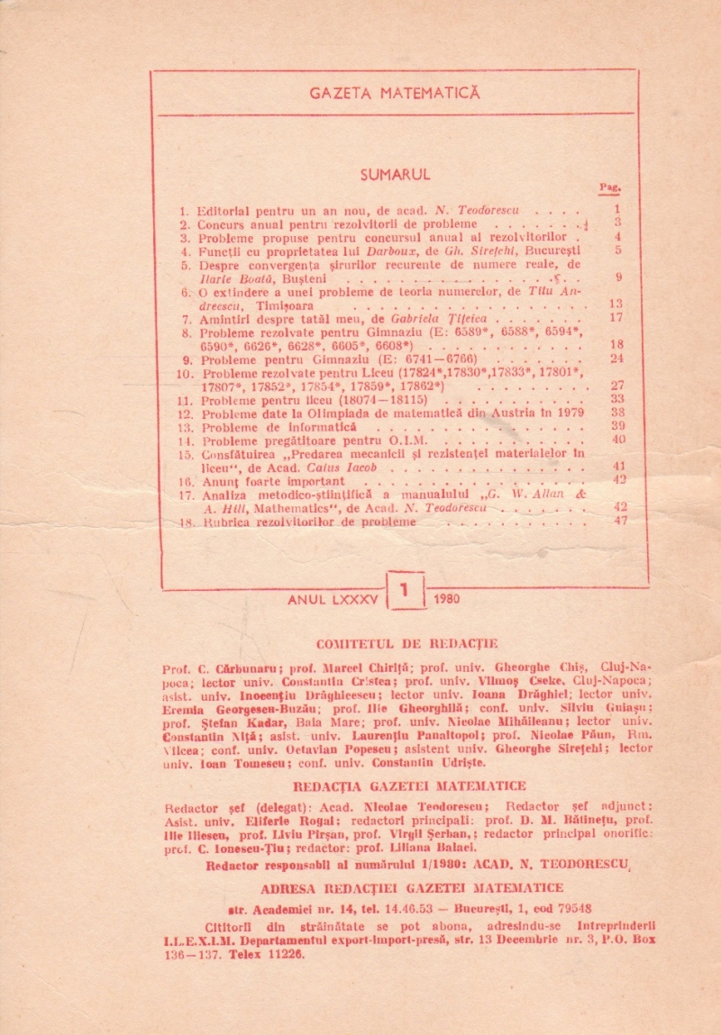 Gazeta Matematica, 6 numere (Septembrie 1967, Ianuarie-Aprilie si Iunie 1968)