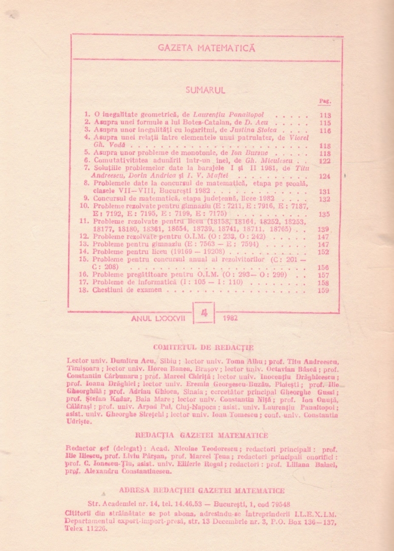 Gazeta Matematica, 6 numere (Septembrie 1967, Ianuarie-Aprilie si Iunie 1968)