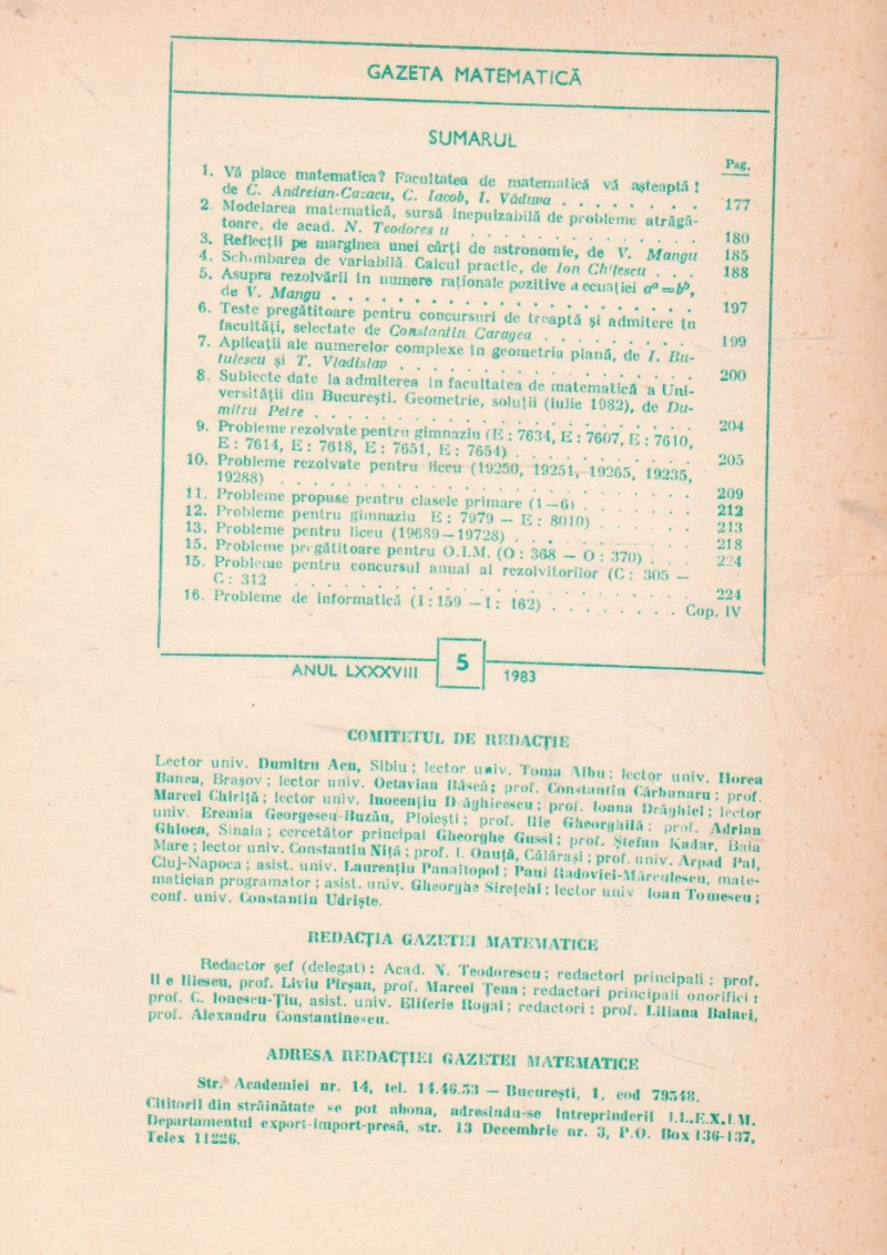 Gazeta Matematica, 6 numere (Septembrie 1967, Ianuarie-Aprilie si Iunie 1968)